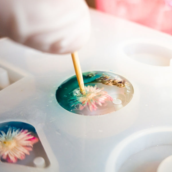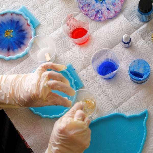 The poured resin is left to cure, solidifying into its final form. This stage is essential for developing the strength and clarity of the piece.